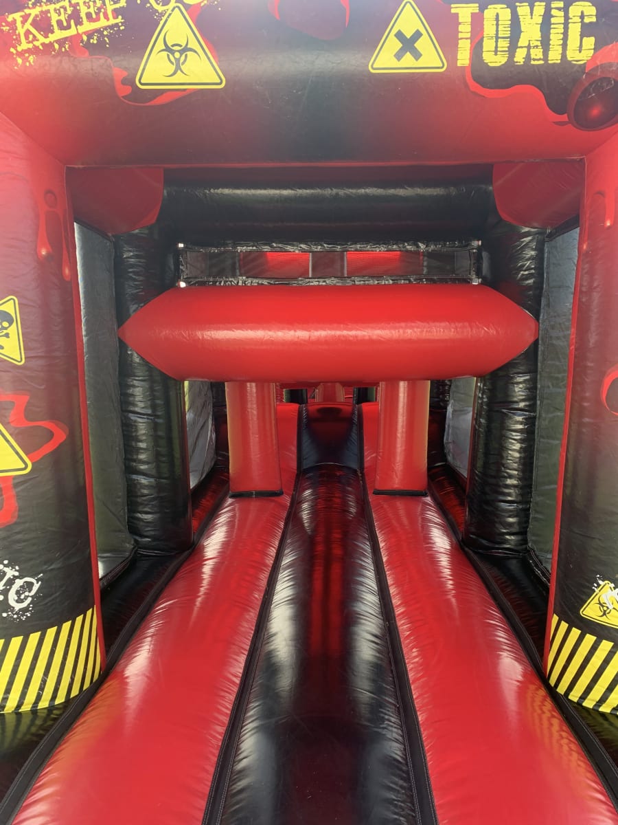 Get ready to dive into a high-octane adventure with our colossal 60-foot Red Toxic Obstacle Course! 🌟🎢 This isn't just an obstacle course; it's a heart-pounding, thrill-packed, mega-quest that'll have you conquering obstacles, scaling walls, and zooming down a 8-foot slide for an unforgettable journey! 💥🏃♀️🏃♂️ Here's the scoop on the action: As you enter through the back, a world of excitement unfolds. You'll navigate through a challenging maze of obstacles that'll put your skills to the test. But that's just the beginning! Get ready to take on the legendary climbing wall, where you'll scale to new heights like a true champion. And when you reach the summit, it's time for the grand finale – a thrilling descent down the 8-foot slide that'll leave you breathless with excitement! But here's the kicker: The slide brings you right back outside, so the adventure never ends! It's a non-stop, adrenaline-pumping ride that's perfect for adventurers of all ages. 🚀🌪️🎉 So, gather your crew and let's tackle this Red Toxic Obstacle Course together. It's a giant playground of excitement that's bound to make you grin from ear to ear! 🤸♀️🤸♂️🏁