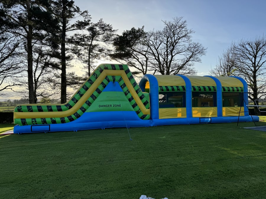 Get ready for an adventure-packed obstacle course that's bursting with excitement! We've cranked up the fun to the max with a thrilling Climb Through Wall, a wild and wacky Bish Bash Pole challenge, and the pièce de résistance - a GIANT Slide that's sure to send your heart racing!